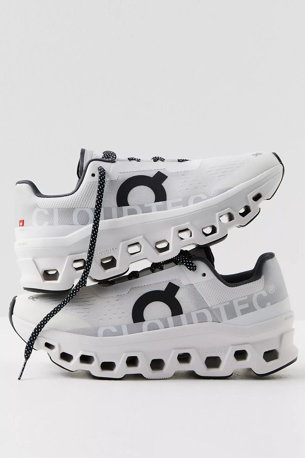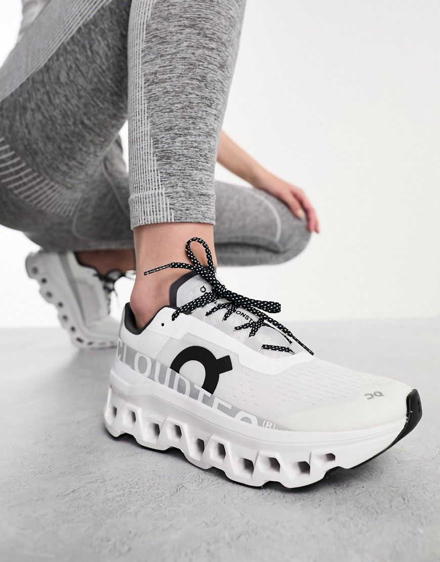 With its striking sole and white design with black details, the Cloudmonster offers cushioning on impact and stability.
