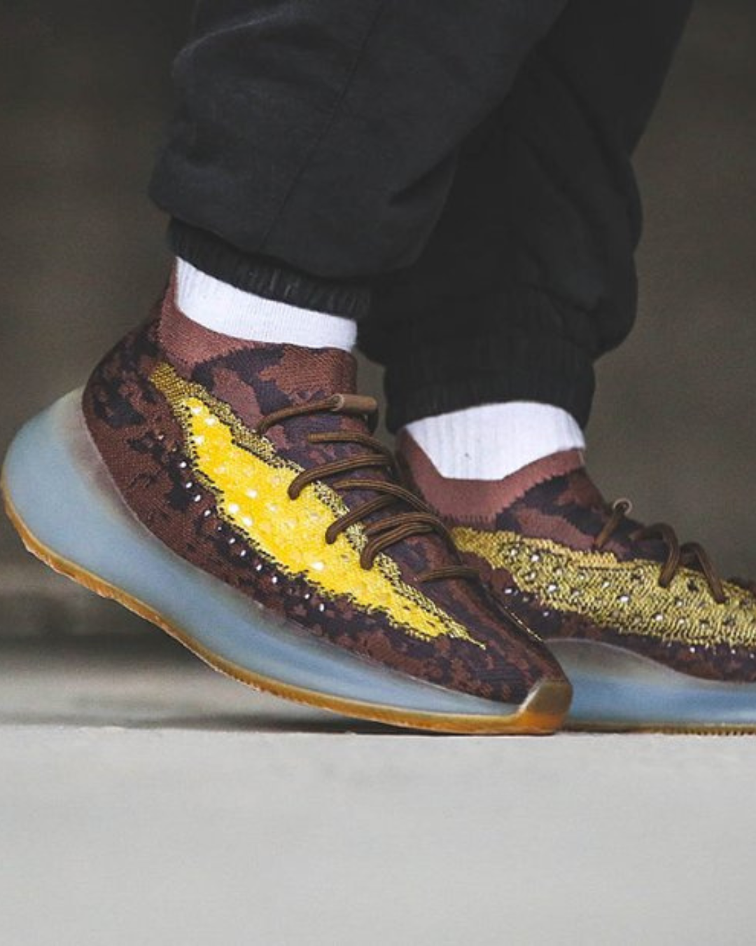 The Yeezy Boost 380 delivers a bold look with limitless comfort. A mix of earthy tones with vibrant yellow detailing creates a design that won't go unnoticed.